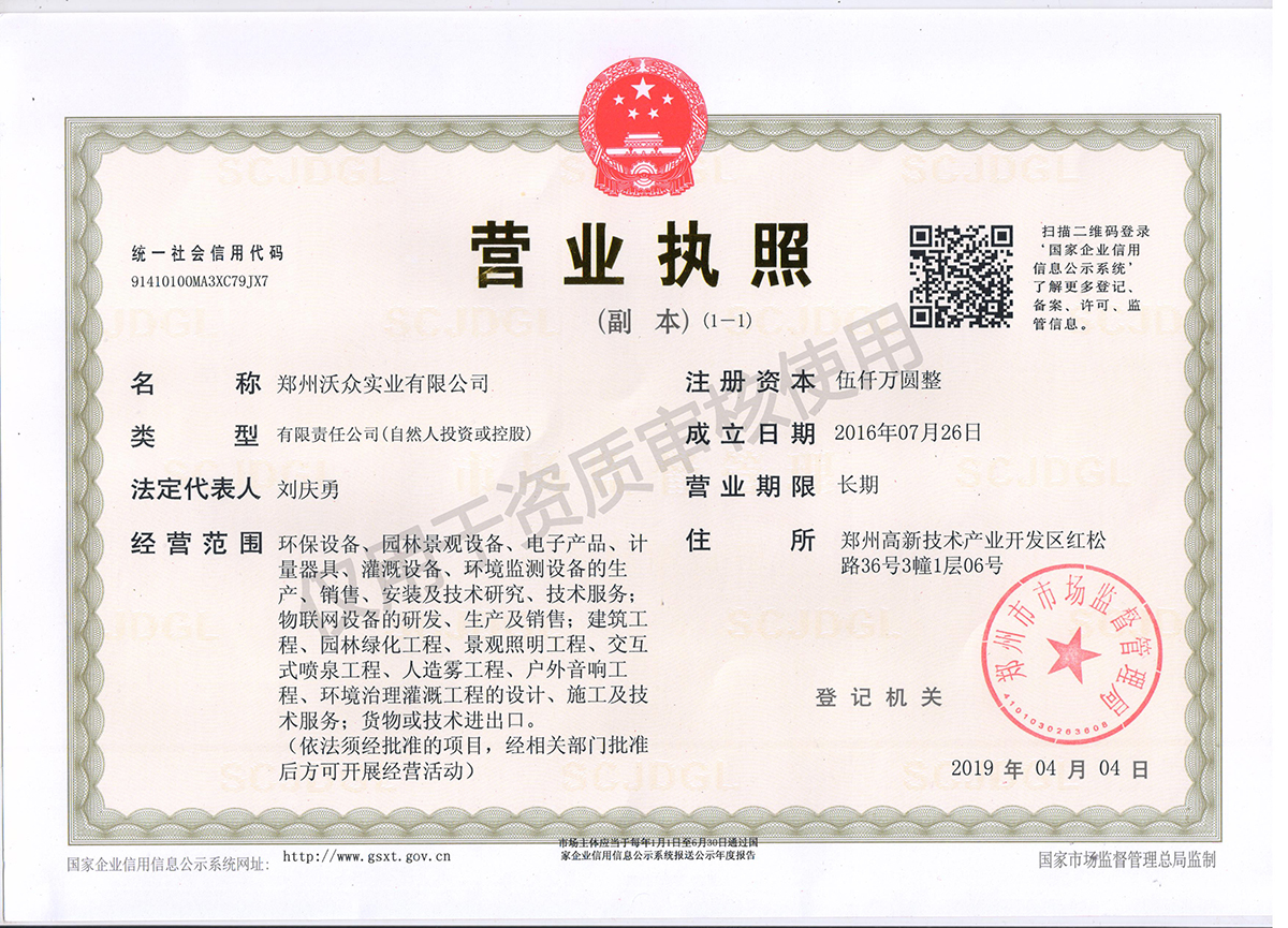 鄭州沃眾實(shí)業(yè)有限公司,簡(jiǎn)稱(chēng) 鄭州沃眾 ,是一家集科技水景設(shè)備、環(huán)保設(shè)備、環(huán)境監(jiān)測(cè)設(shè)備、物聯(lián)網(wǎng)設(shè)備研發(fā)、生產(chǎn)、銷(xiāo)售及建筑工程、園林綠化工程、景觀(guān)照明工程、交互式噴泉工程、人造霧工程、戶(hù)外音響工程、環(huán)境治理工程設(shè)計(jì)和施工為一體的高新技術(shù)企業(yè)。 公司自成立多年以來(lái),堅(jiān)定不移地實(shí)施科技創(chuàng)新驅(qū)動(dòng)發(fā)展戰(zhàn)略,致力于相關(guān)產(chǎn)品的研發(fā)和應(yīng)用,在高新技術(shù)設(shè)備制